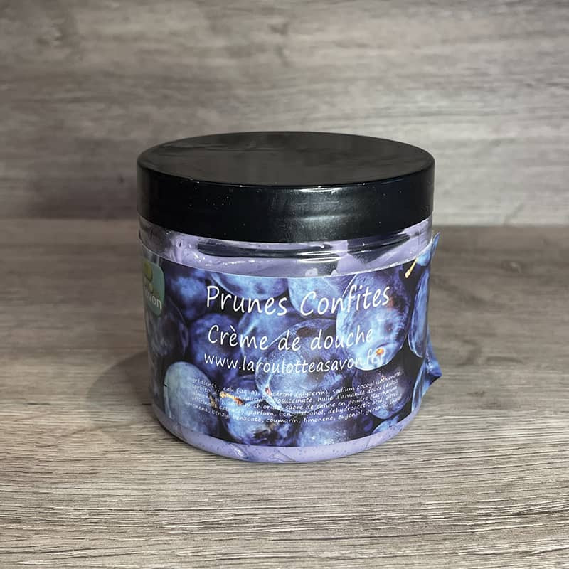 La crème de douche Prunes Confites est une crème lavante douce, à la texture crémeuse et au doux parfum de confiture de prune acidulée. Sa formule spéciale, enrichie aux huiles précieuses, nettoie votre peau tout en lui apportant une touche de gommage grâce aux cristaux de sucre.